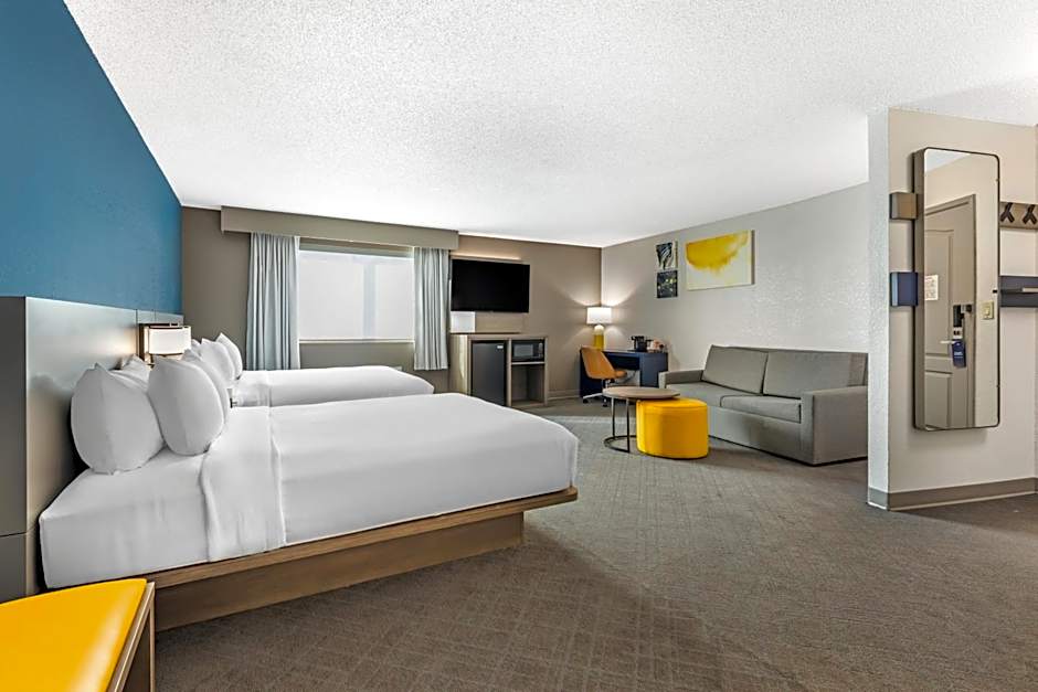 The suite is furnished with a desk and a seating area and offers a tea and coffee maker and heating.